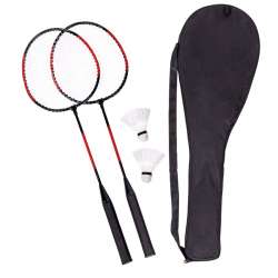 Set de badminton SMASH: 2 raquettes et 2 volants dans sac de transport avec poignée, illet de suspension