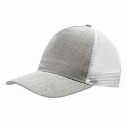 Casquette à 5 panneaux CASUAL FIT , 2 couleurs : segment devant renforcé et chiné, autres segments en tissu maillé, réglable en taille, fermeture en plastique à double boutonnage à larrière de la tête