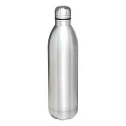 Bouteille sous vide JUMBO TASTE à double paroi: extérieur et intérieur en acier inoxydable, couvercle en argent avec bouchon à vis sécurisé, capacité: env. 1 000 ml, garde au chaud pendant environ 8 heures et froid jusquà 12 heures