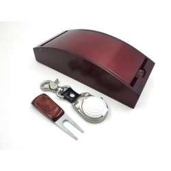 Machen Sie einem passionierten Golfer ein einzigartiges Geschenk. Dieses elegante Geschenkset enthält zwei wesentliche Teile: einen Schlüsselanhänger in Form eines Golfballs und eine Gabel aus Metall mit Holzfinish. Das Ganze ist in einer edlen Holzschachtel verpackt, die sich perfekt für Liebhaber dieses Sports eignet.