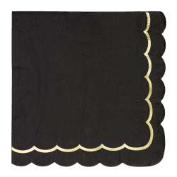 Elegante festonierte Servietten in Schwarz mit goldenem Rand.
