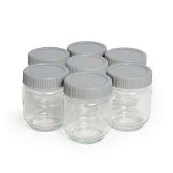 - 7 Gläser aus Glas mit Schraubdeckel.