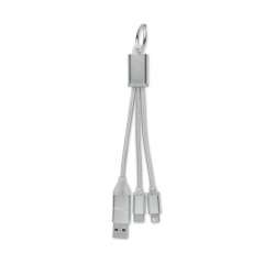 Praktischer Schlüsselanhänger mit 4-in-1 Ladefunktion.
