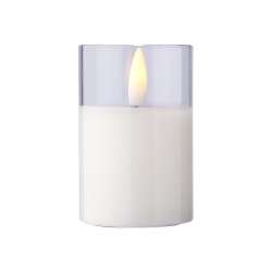 LED-Kerze aus PP in einem Glasbehälter mit Flammeneffekt.
