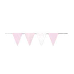 Enthält 4 Wimpel in Altrosa, 4 Wimpel mit weißen Sternen in Altrosa und 4 Wimpel mit Illustrationen: Prinzessin, Barbapapa, Pink, Glück, Umarmung.