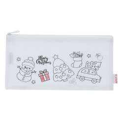 Weihnachtstasche aus weißem RPET-Vlies. Ideal zum Ausmalen mit Buntstiften.