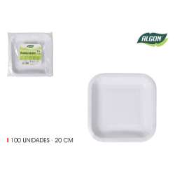 Set aus 100 quadratischen Papptellern 20 cm.