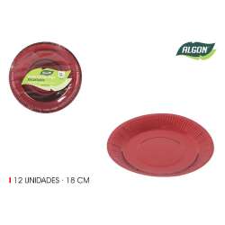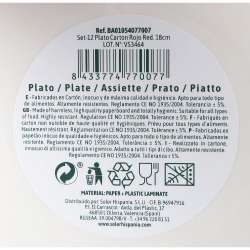 Set aus 12 roten, runden Papptellern (18 cm).