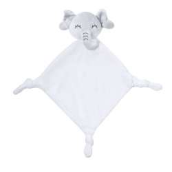 Weicher Doudou mit ansprechendem Design eines weißen Elefanten.