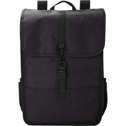 Robuster Rucksack mit Klappe aus 300D rPET-Polyester.
