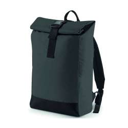 Reflektierender Rucksack mit rollbarem Verschluss.