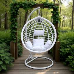 SCHWINGENDE COCOON-CHAISEN MIT WEISSEN KISSEN