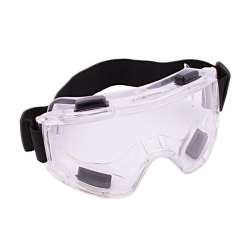 Eine spritzwassergeschützte Brille aus robustem Polycarbonat.