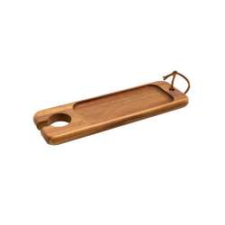 Individuelle Apéro-Platte aus Akazie. Ideal für Wein- oder Champagnergläser. Mit praktischem Lederbändchen.