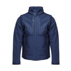 Dreischichtige Softshelljacke mit abnehmbaren Ärmeln.