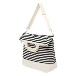 Sac de plage JUIST: grand compartiment principal avec fermeture éclair, 2 poignées, bandoulière ajustable et amovible, la volume du sac est réduit de 25% en rabattant le haut du sac, qui tient grâce à un aimant