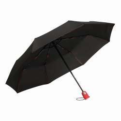 Parapluie pliable ouverture et fermeture automatiques anti-tempête STREETLIFE: coutures de la couleur de la poignée, manche en métal en 3 parties, avec baleines en fibre de verre-métal, embouts en métal, manche recouvert de caoutchouc avec dragonne, toile en polyester pongé, fermeture velcro, housse avec coutures assorties et fermeture velcro